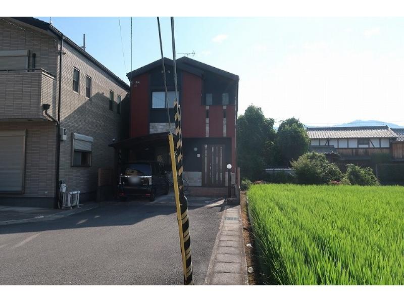 三方向空につき開放感があります、東と西は道、北は田んぼと畑イネや野菜の成長が見られます。いっぱい部屋のある間取り4SLDK、玄関はおしゃれで明るい吹抜となっています。お買物はフレスココレモ嵯峨野店徒歩8分、イオンスタイル嵯峨野小町徒歩9分。学校は嵯峨野小学校徒歩8分。
