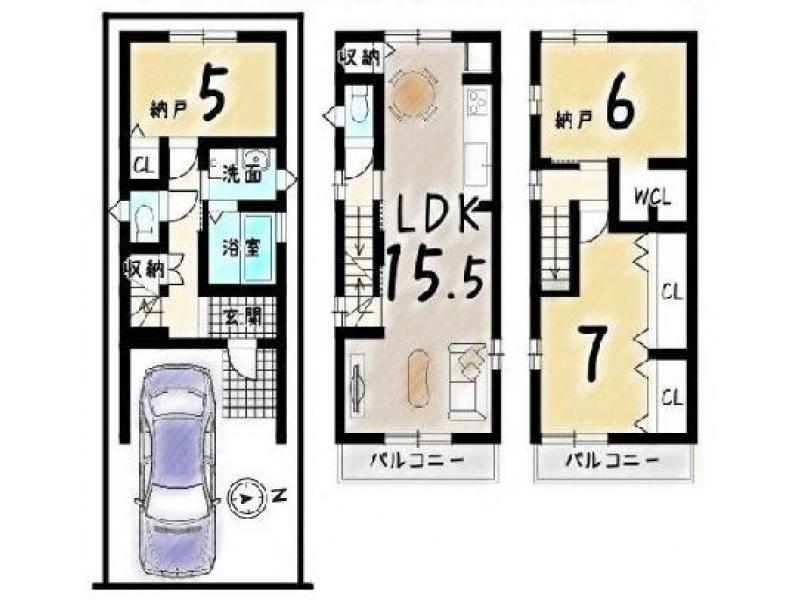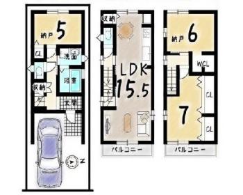 | 土地面積 | 55.24m² (16.71坪) | 建物面積 | 86.54m² (26.17坪) |