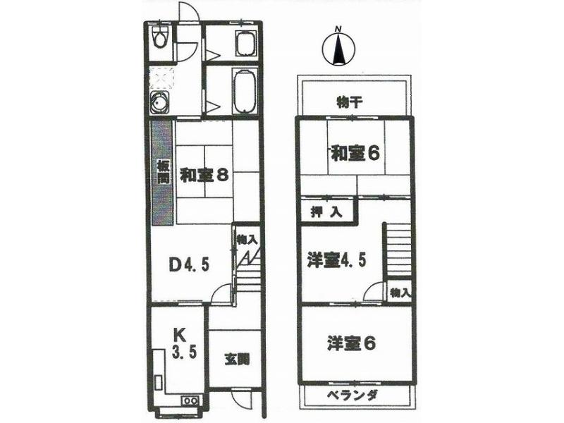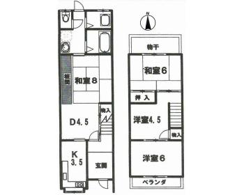 右京区嵯峨甲塚町 中古連棟 5K 800万円