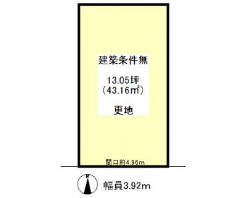 | 特色 | 建築条件無、更地、南向き、有効土地面積43.16平米・セットバック面積約0.29平米・公簿43.45平米 | ||