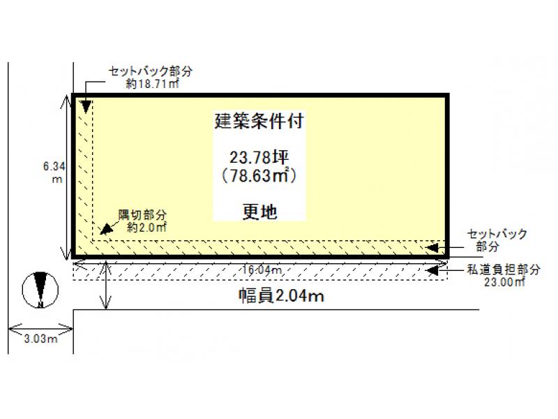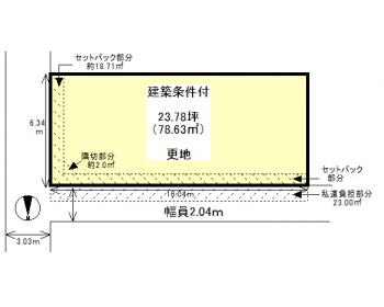 | 接道 | 東側 幅員3.4m 接面6.2m(私道), 北側 幅員2.7m 接面16.2m(私道) | ||