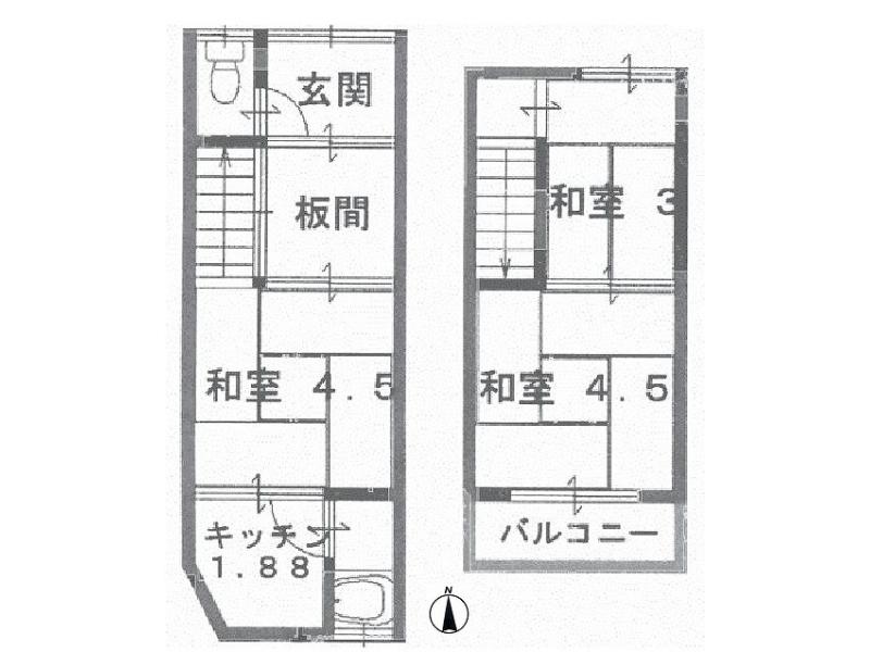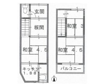 | 物件名 | 右京区太秦安井二条裏町 中古連棟 3K | ||