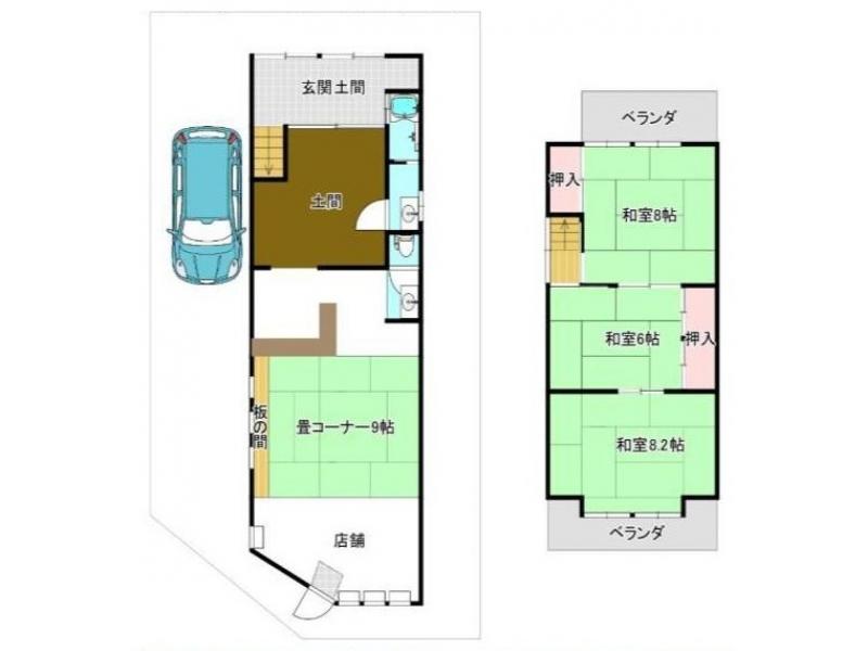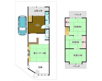 | 特色 | 店舗付き住宅、店舗+4部屋、1階60.85平米 2階41.85平米、平成4年増改築、2026年2月洗い完了、司法書士指定有、建蔽率超過物件、駐車1台可 | ||