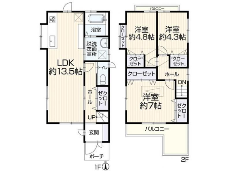 | 土地面積 | 66.14m² (20坪) | 建物面積 | 75.33m² (22.78坪) |